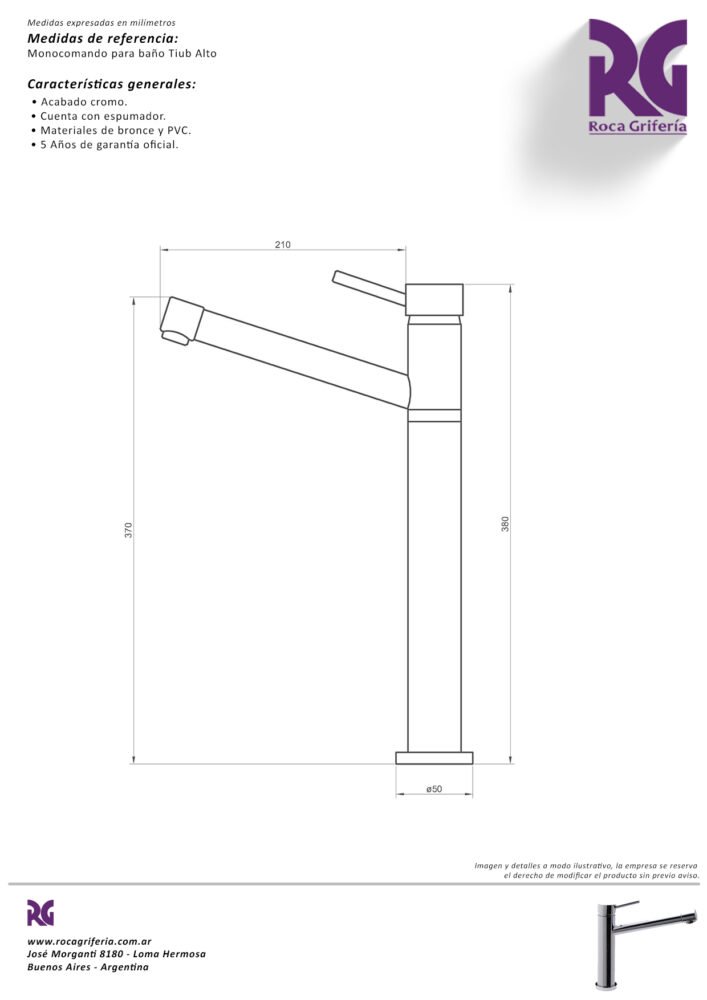 Monocomando para baño - Lavatorio alto